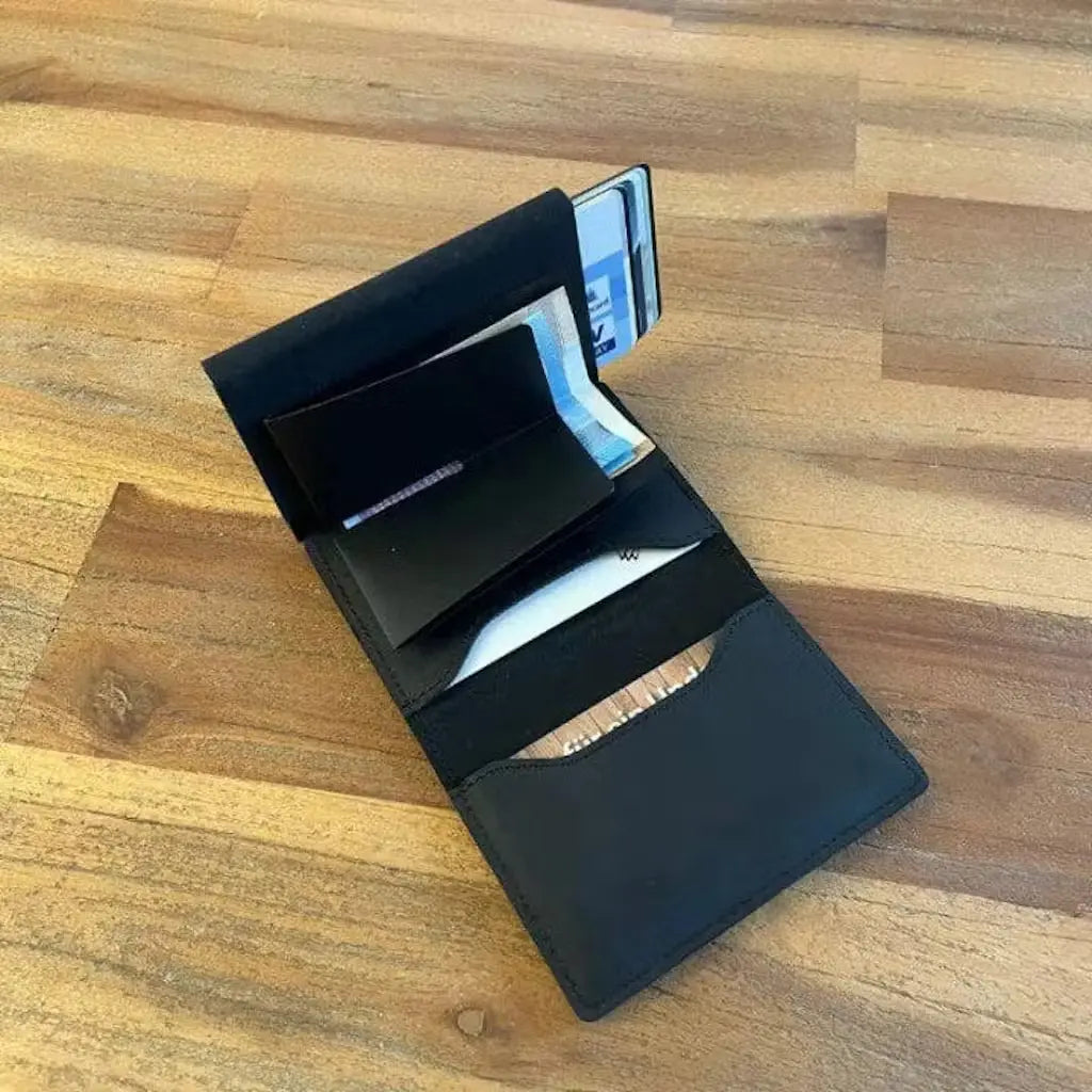 Because it combines timeless design, premium materials, and advanced functionality — like magnetic closure, RFID protection, and space for cash, coins, or an AirTag.