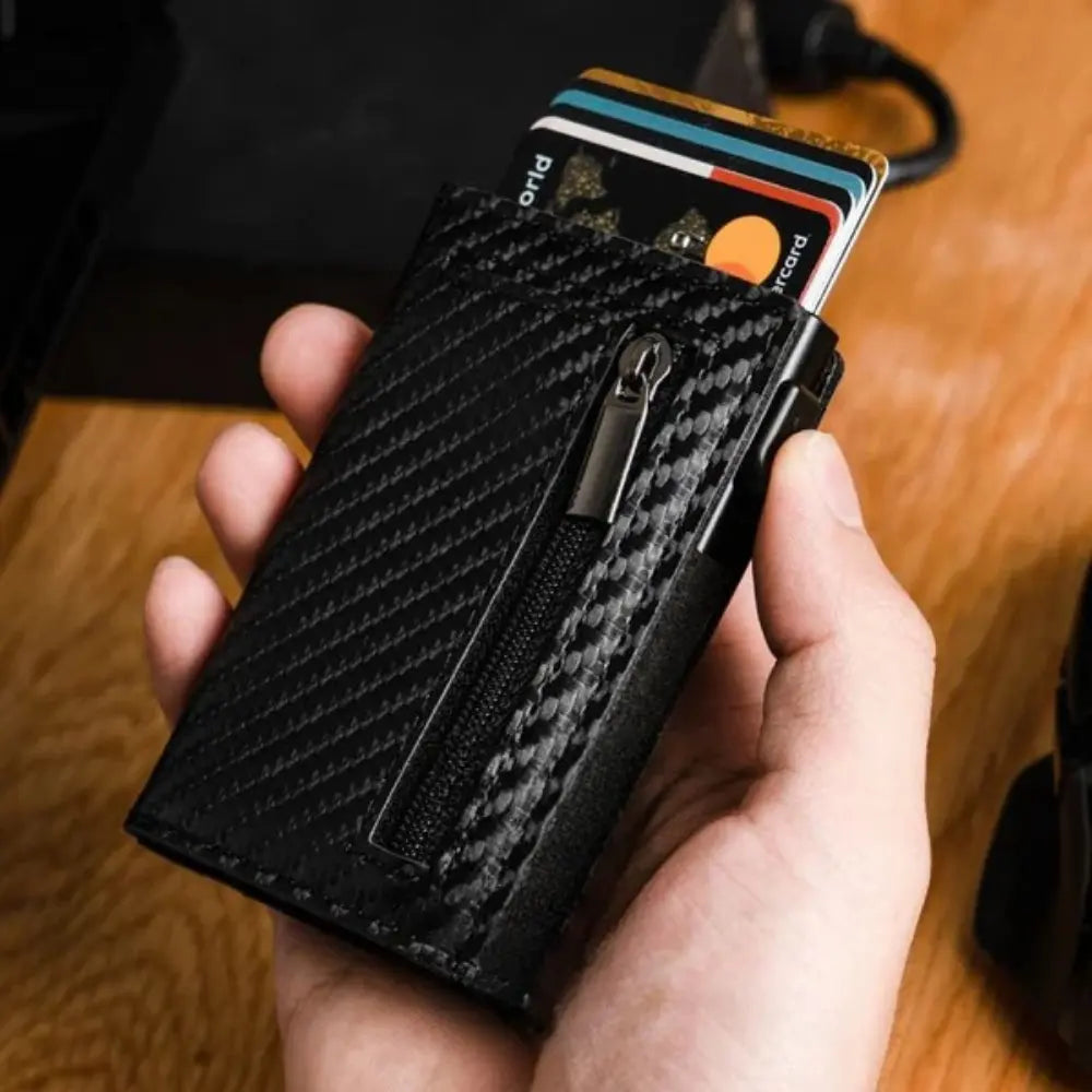 The card ejection system is smooth and fast. I use the side slot for my ID and the RFID case for my bank cards. Everything stays organized, and the carbon finish looks awesome.